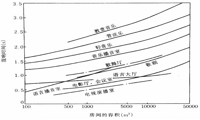 另外,对演出用工程的混响时间的计算还要考虑空场时和观众满场时的区别。