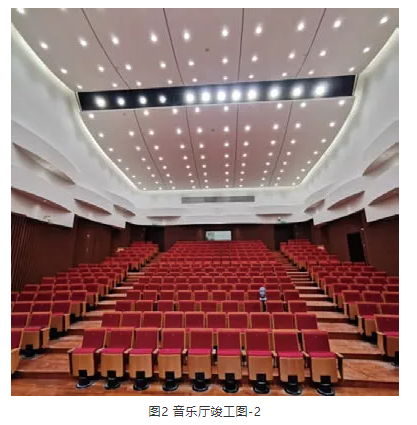 通过采用各种专业技术手段,对音乐厅做出合理声学设计,得到业主方和使用方的一致认可。期待学生们能在此获得良好的观感体验,创作出更好的音乐作品。